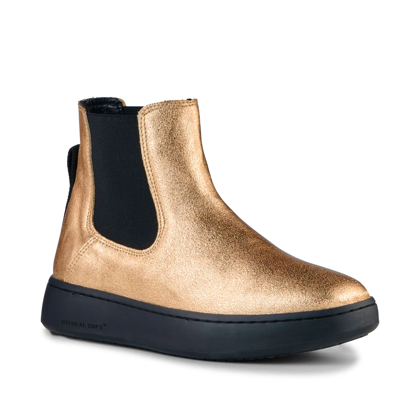 Hannah Metallic Leather ist ein Schlupfstiefel aus Leder. All unser Leder stammt aus LWG-zertifizierter Produktion. Die Einlegesohle des Stiefels besteht aus einer weichen Unterlage aus leichtem und stoßdämpfendem PU-Schaumstoff, bezogen mit dem charakteristischen WODEN-Kork, der für Atmungsaktivität sorgt. Die Laufsohle basiert auf unserer Natural-Soft-Technologie, die optimalen Komfort garantiert. Zudem besteht sie aus 65 % natürlichem Gummi, 10 % recyceltem Gummi und 25 % konventionell hergestelltem Gummi. Hannah Metallic Leather verleiht Ihrem Outfit neuen Glanz.