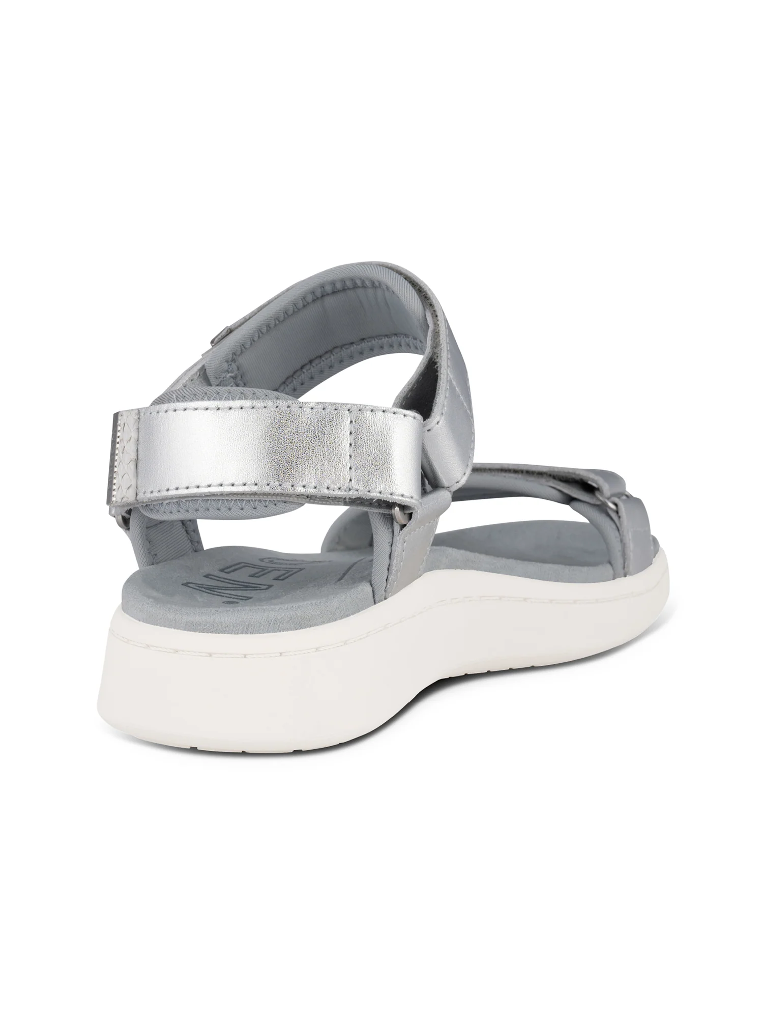 Line ist eine elegante und komfortable Sandale aus wunderschönem rosé- und silberfarbenem Metallic-Leder, mit Fischleder-Details für einen stilvollen und bequemen Look. Aufgrund ihrer verstellbaren Riemen, weichen Materialien und schützenden Polster bietet sie die beste Passform für ein angenehmes Gehgefühl.
