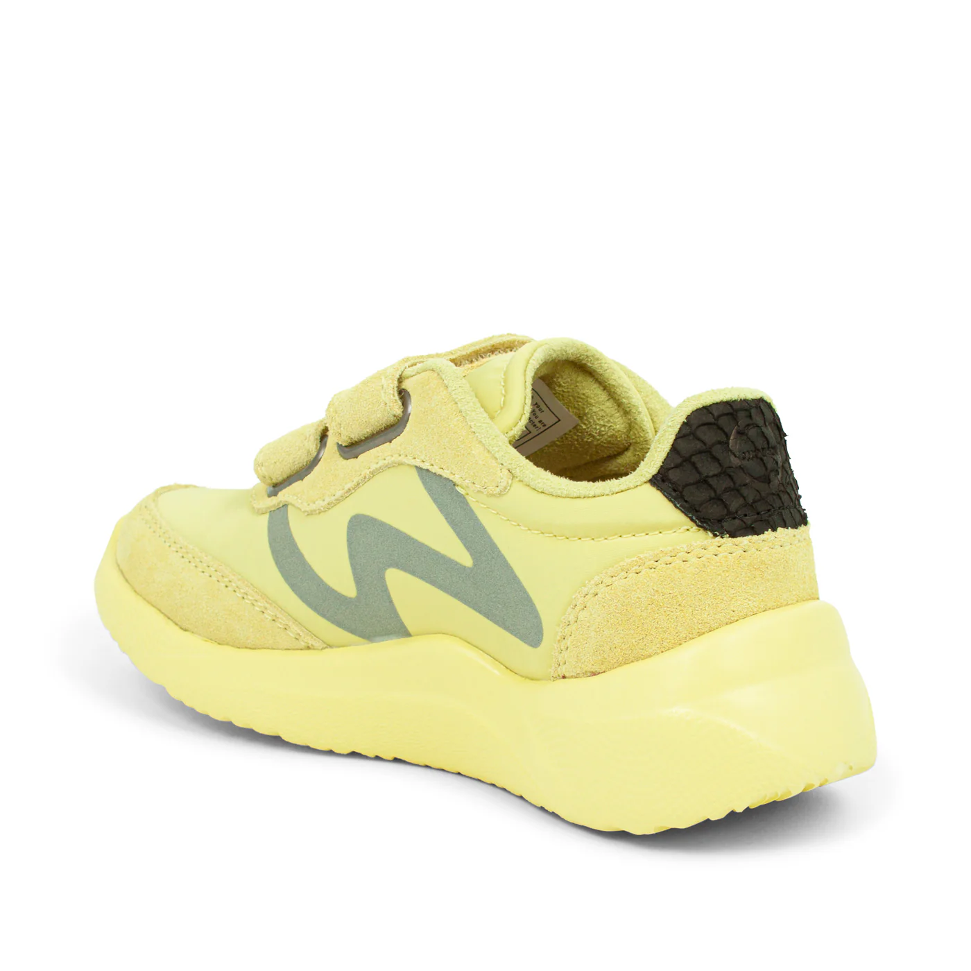 Sneaker für Kinder mit fester Fersenkappe und Klettverschluss. Mit Details aus Fischleder und aus atmungsaktiven Materialien wie Nylon und Mikrofaser, die für ein gutes Innenklima im Schuh sorgen. Alle Kindersneaker sind mit FIFTY ausgestattet: einer Verstärkung der Innenseite, die aus mind. 50 % recyceltem Polyester aus Plastikflaschen besteht. Herausnehmbare Einlegesohle mit aufgezeichneter Wachstumszulage. Laufsohle aus natürlichem Gummi, das mit mind. 10 % recyceltem Gummi und natürlichem Gummi gemischt wurde.