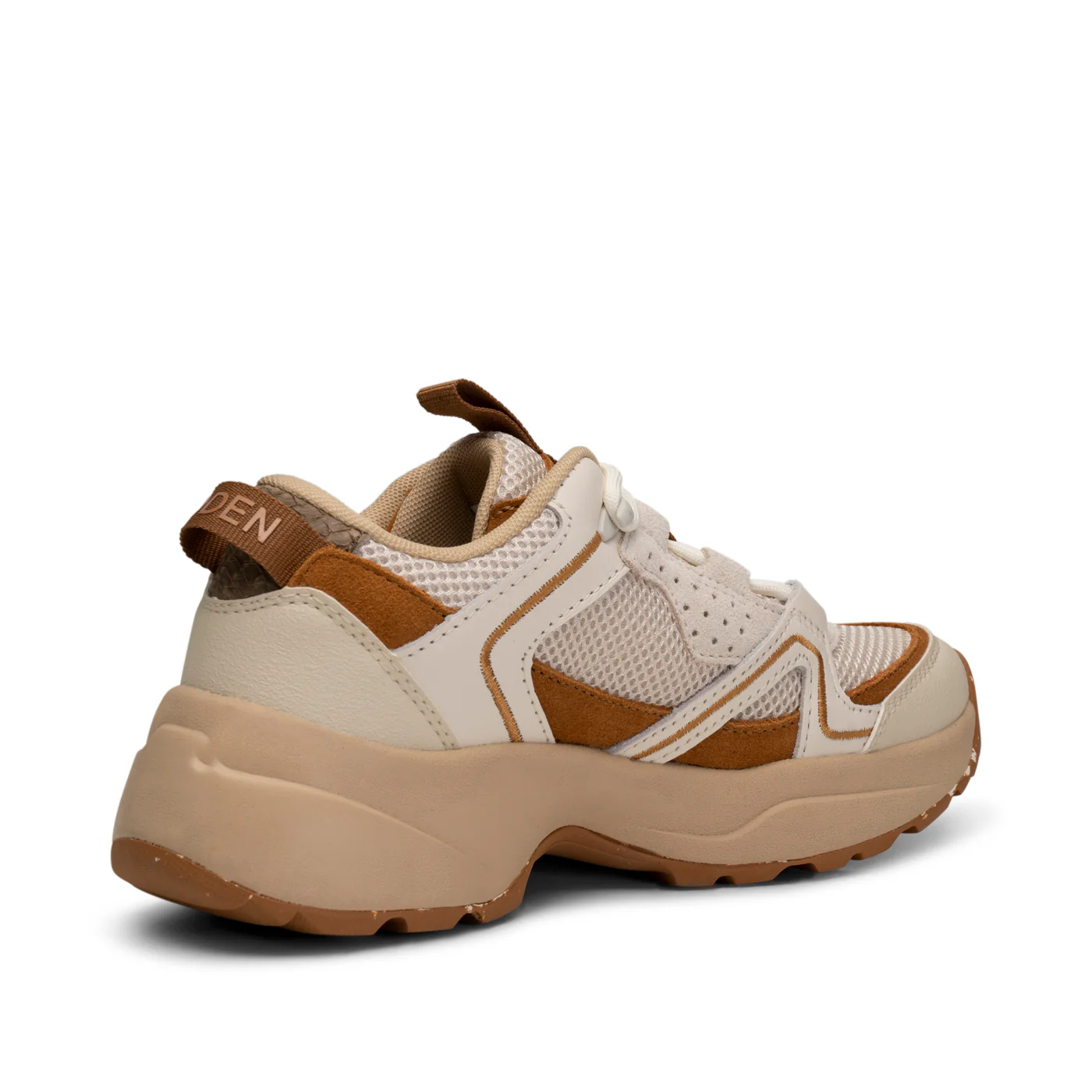 Einzigartig für WODEN-Sneaker ist, dass wir mindestens 50 % recyceltes Polyester aus PET-Flaschen in die Innenverstärkung einarbeiten. Für die Einlegesohle der Sneaker wird weicher PU-Schaum verwendet, der nicht nur leicht, sondern auch stoßdämpfend ist.