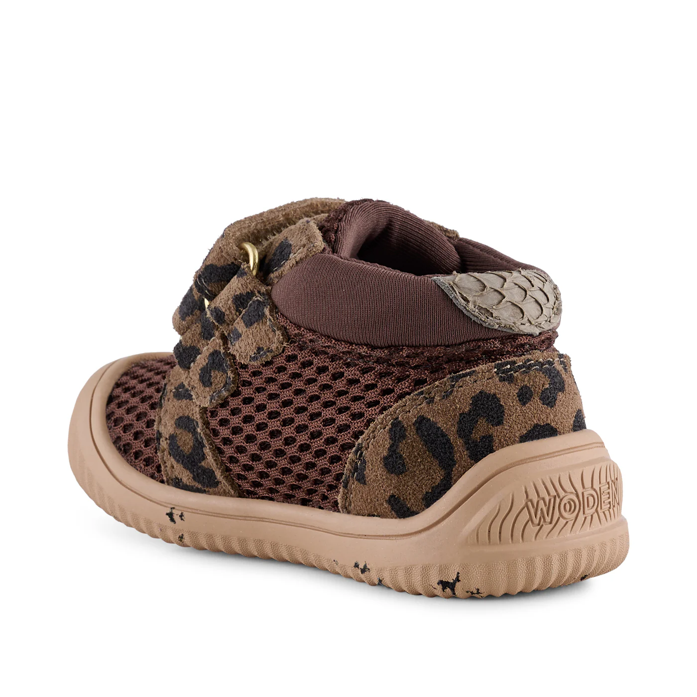 Ein Babyschuh in trendigen Farben mit praktischem Klettverschluss, hübschen Details aus Wildleder mit Leopardenmuster sowie Fischleder. Die feste Fersenkappe und die Kombination aus Textil und Mesh sorgen auch bei kleinen Füßen für ein gesundes Fußklima. Der Schuh bietet viel Zehenfreiheit und hat eine herausnehmbare Einlegesohle aus natürlich stoßdämpfendem Kork. Die Laufsohle aus TPR sorgt für einen guten Halt.